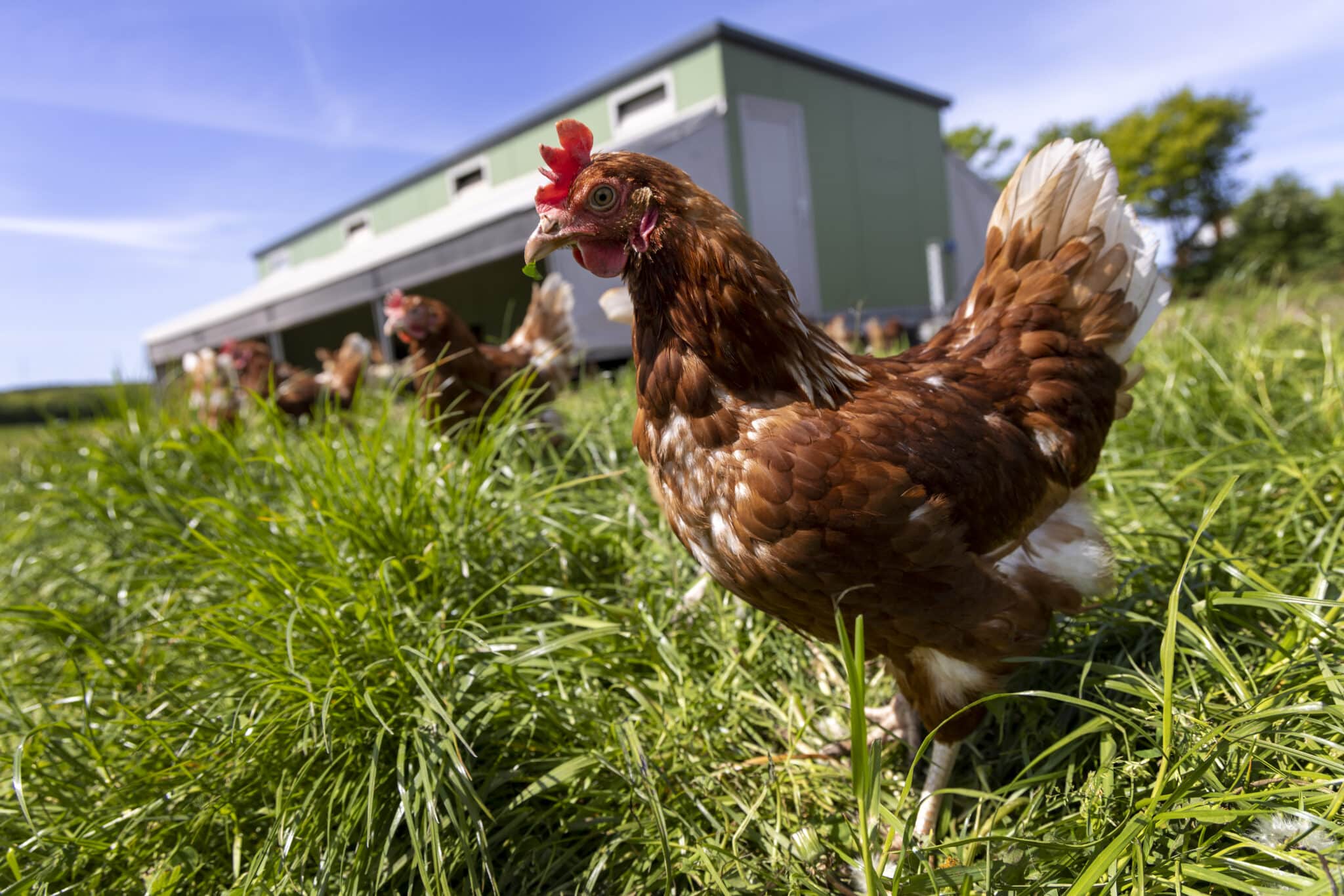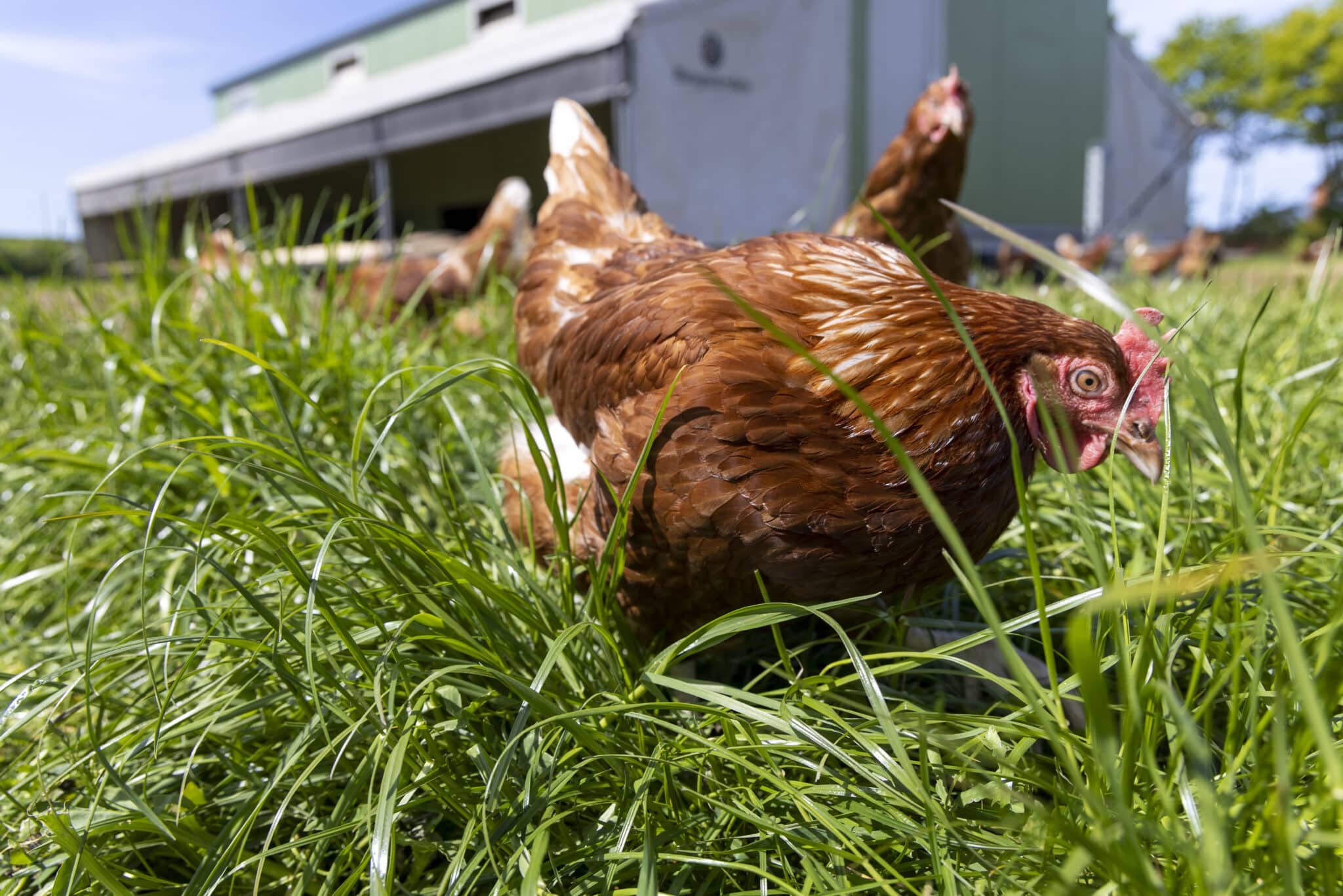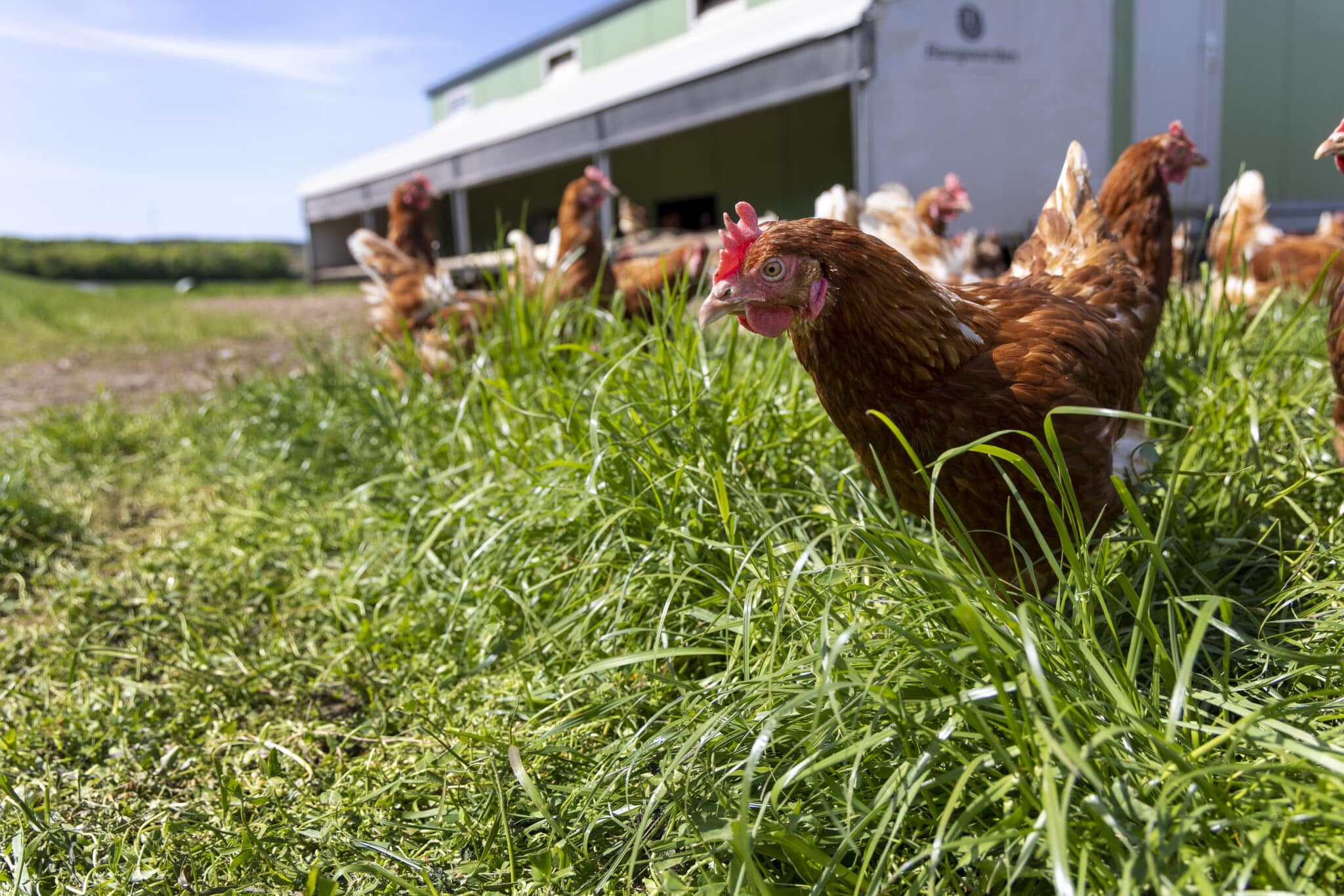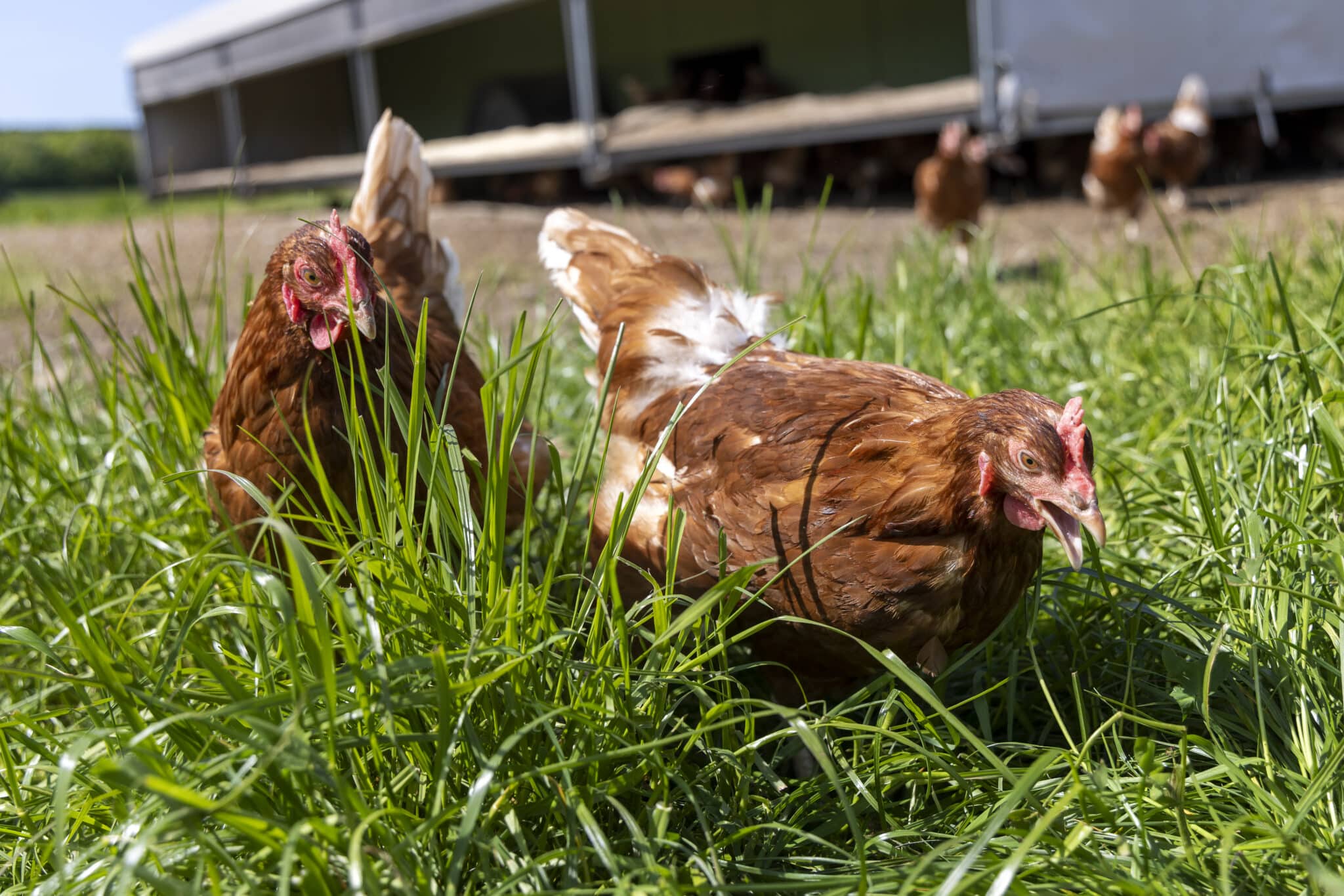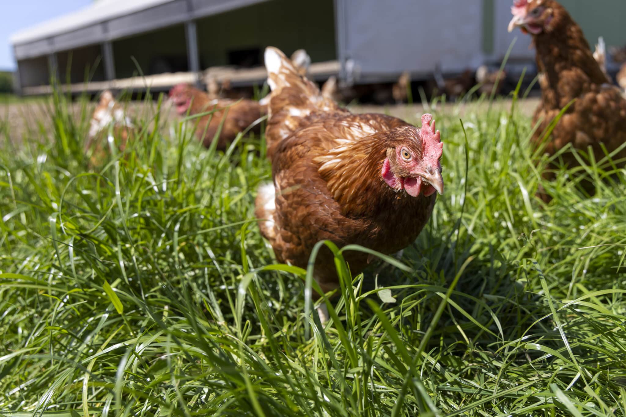 På Skovgaard går vi meget op i dyrevelfærd, derfor producerer vi bla. Frilands æg. Vi har 2 mobile hønsehuse, som vi flytter rundt på græsmarkerne omkring gården, derved har hønsene altid adgang til frisk græs.